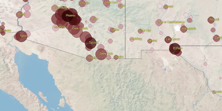 **Some cities are placed on more than one county. Only 1 county is shown.