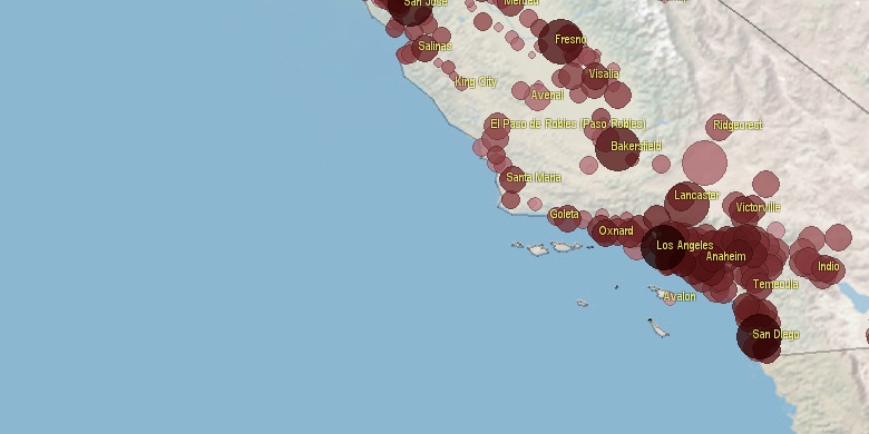 **Some cities are placed on more than one county. Only 1 county is shown.