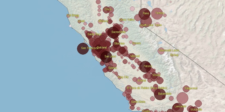 **Some cities are placed on more than one county. Only 1 county is shown.