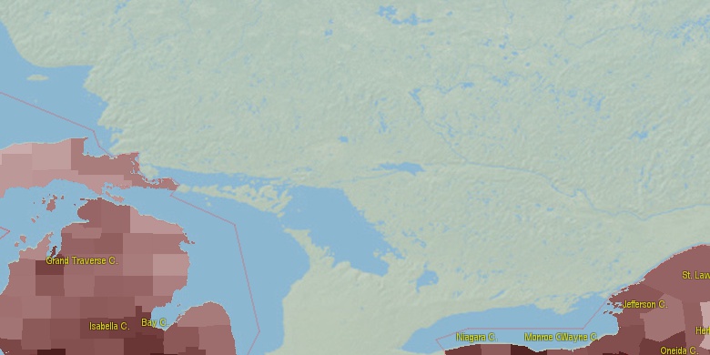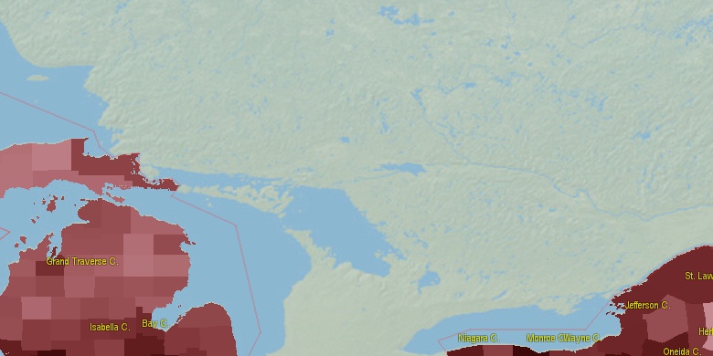 [4] County area, latitude longitude data, retrieved 02/23/2016