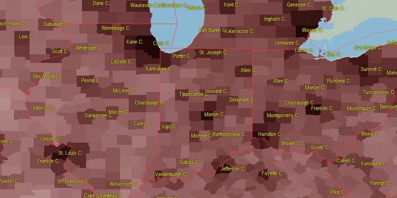 [4] County area, latitude longitude data, retrieved 02/23/2016