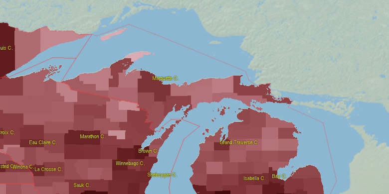 [4] County area, latitude longitude data, retrieved 02/23/2016