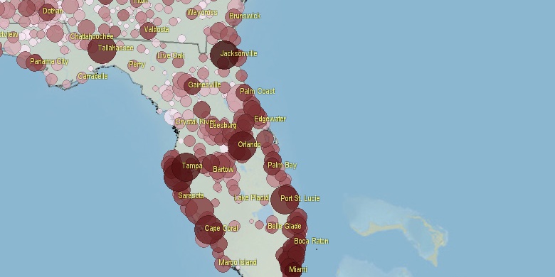 **Some cities are placed on more than one county. Only 1 county is shown.