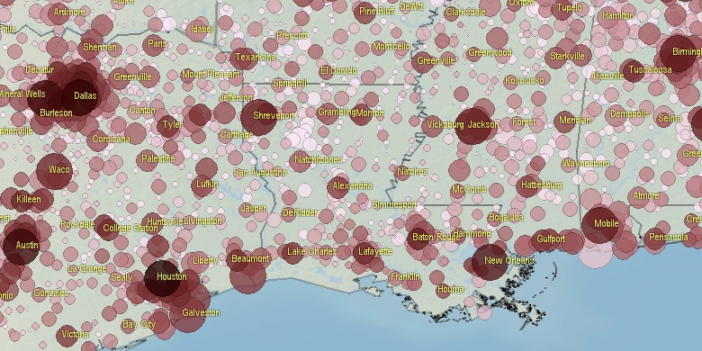 **Some cities are placed on more than one county. Only 1 county is shown.