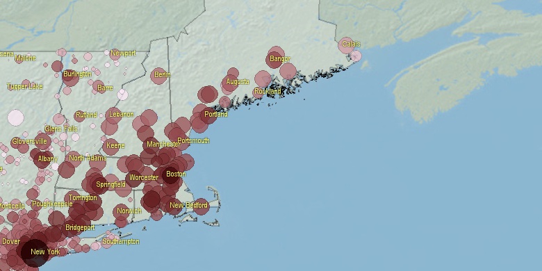 **Some cities are placed on more than one county. Only 1 county is shown.