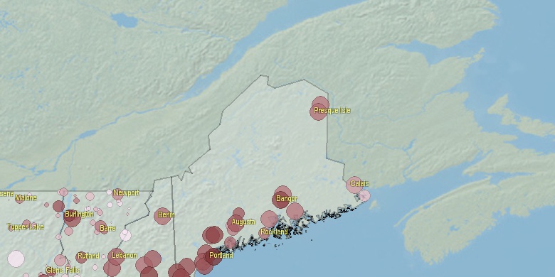 Last official estimated population of Bangor city (Penobscot County**, Maine state) was 32,568 (year 2014)[1]. This was 0.01% of total US population and 2.45% of total Maine state population. Area of Bangor city is 34.6 mi² (=89.6 km²)[6], in this year population density was 941.43 p/mi². If population growth rate would be same as in period 2010-2014 (-0.36%/yr), Bangor city population in 2026 would be 31,195*.
