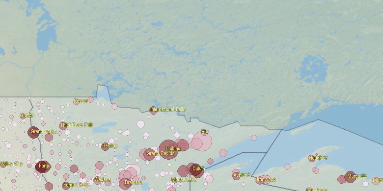 Last official estimated population of Babbitt city (St. Louis County**, Minnesota state) was 1,530 (year 2014)[1]. This was 0% of total US population and 0.03% of total Minnesota state population. Area of Babbitt city is 106.7 mi² (=276.4 km²)[6], in this year population density was 14.34 p/mi². If population growth rate would be same as in period 2010-2014 (+0.92%/yr), Babbitt city population in 2026 would be 1,708*.