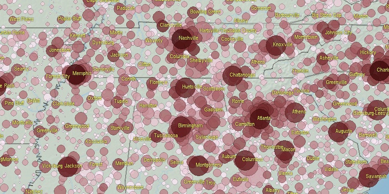 **Some cities are placed on more than one county. Only 1 county is shown.