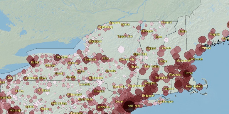 **Some cities are placed on more than one county. Only 1 county is shown.