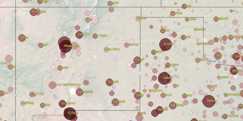 **Some cities are placed on more than one county. Only 1 county is shown.