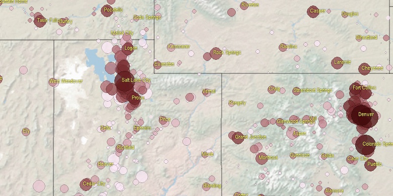 **Some cities are placed on more than one county. Only 1 county is shown.